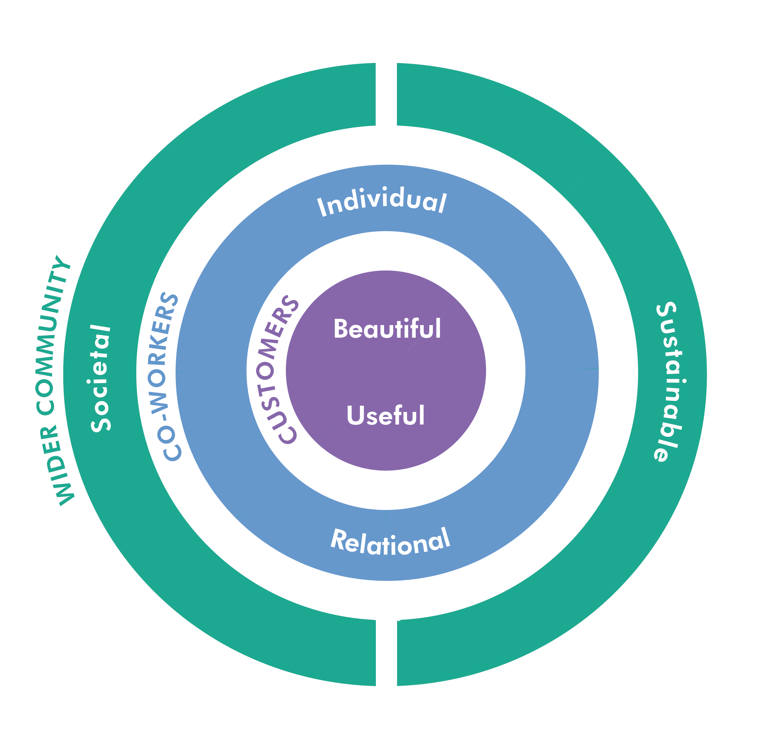 Seeing value moves from measuring a market valuation to including the intrinsic value of our work. It sees value creation in a whole range of activities rather than separating financial from social or environmental value. Value is more than a number we make. Value of lasting worth is generated as useful products are created, staff developed, systems innovated and lives improved across society for generations to come. Generative value is about the value of everything that gives life, growth and flourishing.